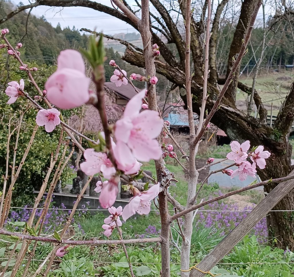 果樹の苗木を植えてから1年半。 初めての花が咲きました。 まだ ちらほらと咲いたということですが 、もしかしたら 実になるかもしれません。まずはアーモンドの花です。 アーモンドは桃の花 でも 受粉するようです。