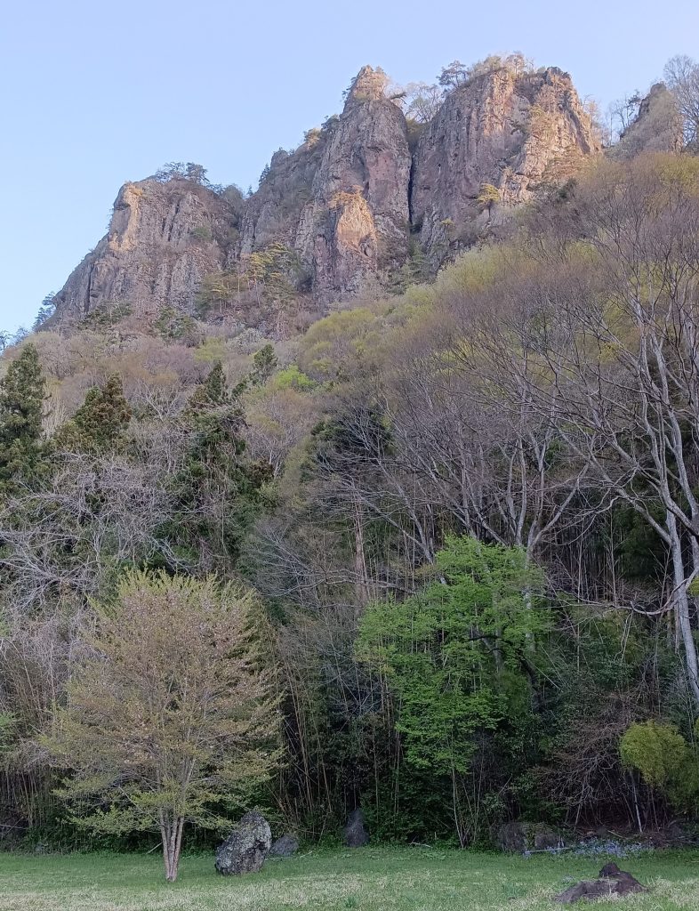 いま、岩櫃山は南面で落石防止の工事をしています。人家に近いところですが 一部 通れない道もあるようです。
